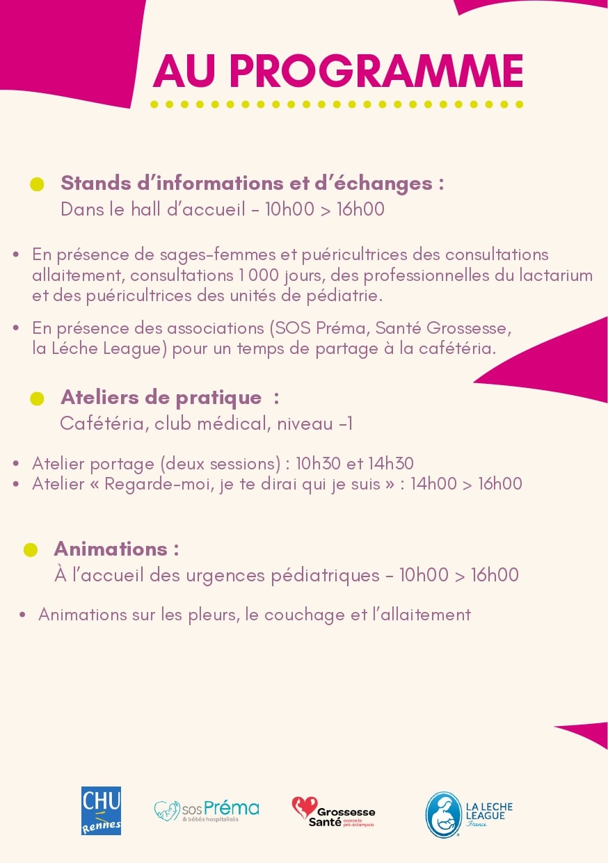 De nombreux événements sont organisés en Bretagne dans le cadre de la Semaine Mondiale de l’Allaitement Maternel 2025. En voici quelques uns.