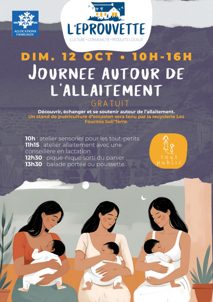 L’Espace de vie sociale, à l’Eprouvette (Saint-André-des-Eaux) organise la troisième édition de leur journée dédiée à l’allaitement. Le 12 octobre 2025, de 10h à 16h.