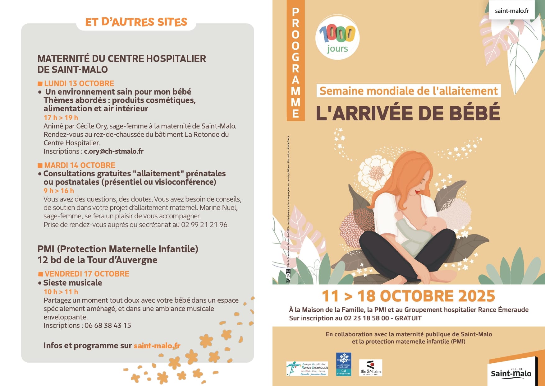 Du 11 au 18 octobre, le Groupe Hospitalier Rance Emeraude, en partenariat avec la PMI, la CAF et la Ville de Saint-Malo, propose des temps pour les futurs parents, jeunes parents et co-parents à la Maison de la famille.