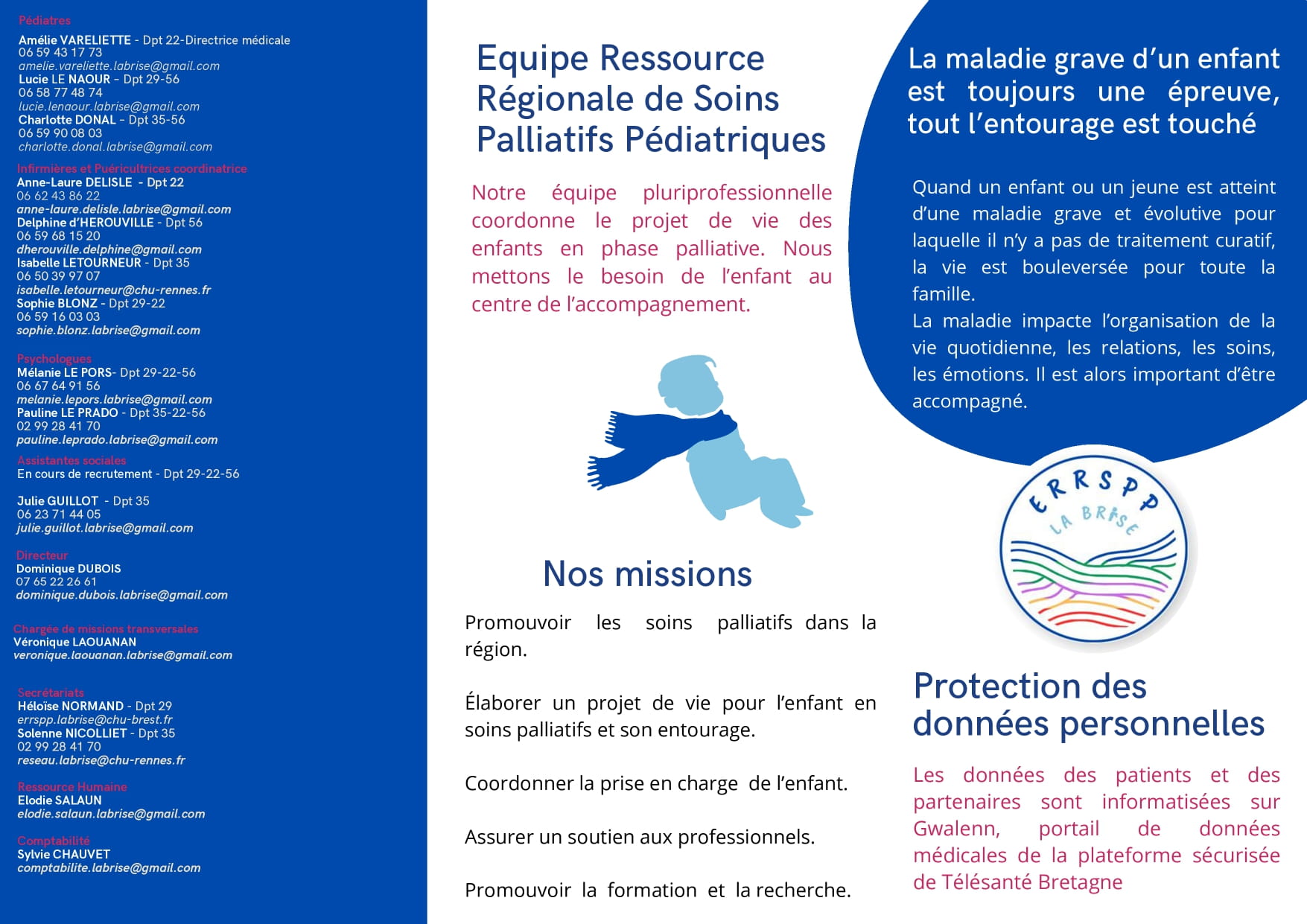 L’ERRSPP La Brise (Équipe Ressource Régionale de Soins Palliatifs Pédiatriques) est une équipe pluriprofessionnelle régionale proposant un accompagnement à l’enfant souffrant d’une maladie grave, évolutive et pour laquelle il n’existe pas de traitement curatif et à son entourage, de la période périnatale à l’âge adulte.