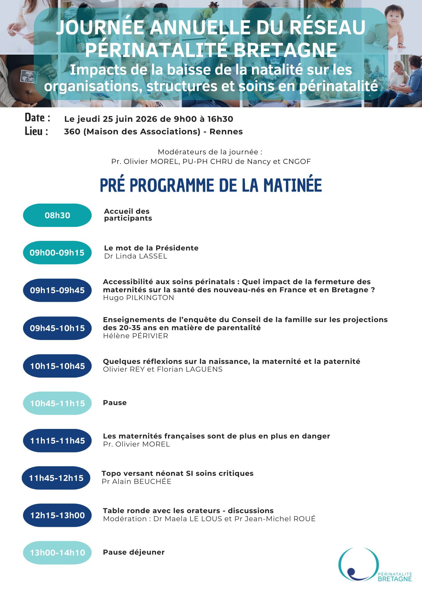 Chaque édition met en lumière un thème spécifique : Brest (2022) sur l’annonce d’une mort fœtale, Vannes (2023) sur la santé mentale périnatale, Saint-Brieuc (2024) sur les morts maternelles et les facteurs humains et organisationnels en santé. En 2025 à Rennes, les échanges furent enrichis par des présentations consacrées à la santé mentale des soignants et à la communication au sein des équipes.